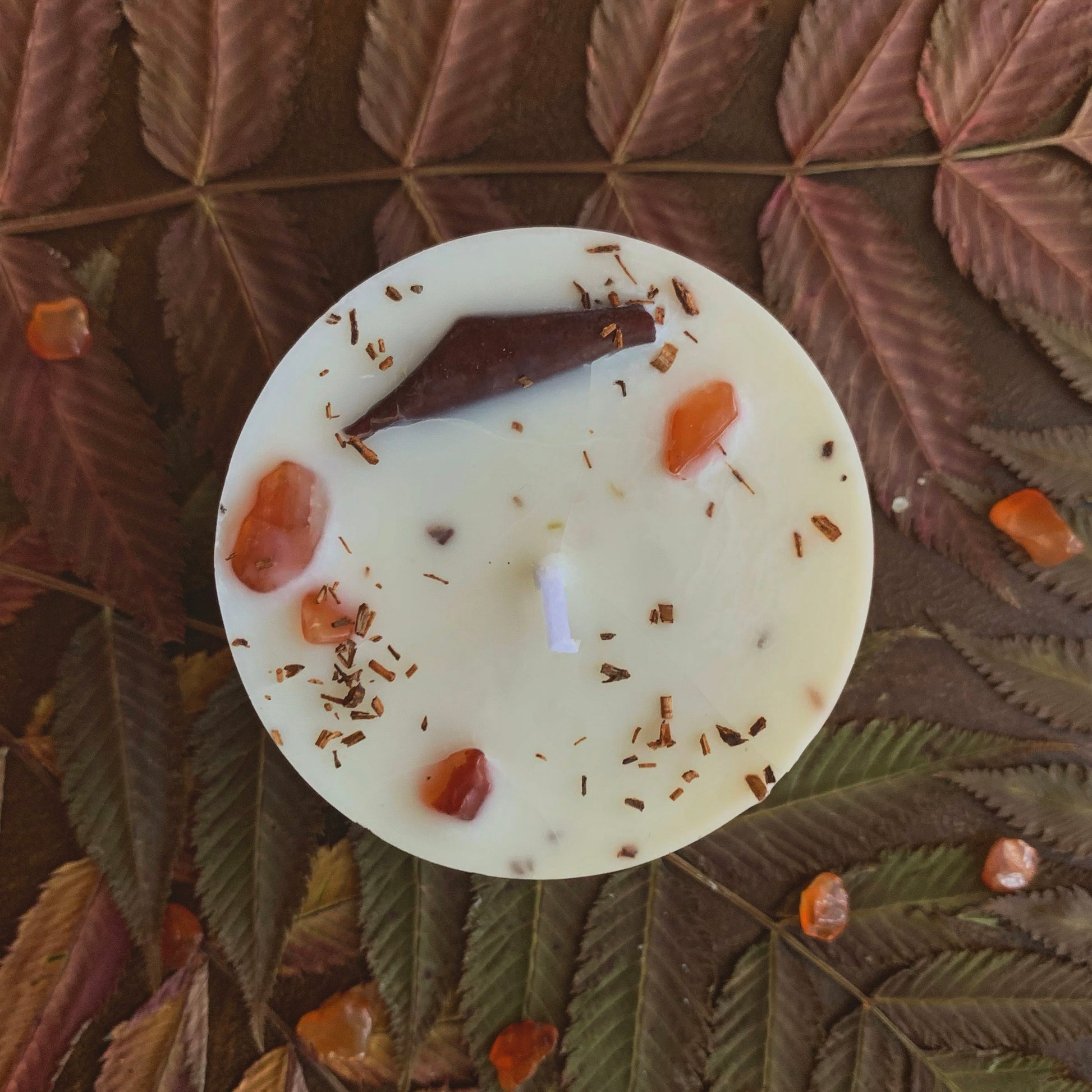 Harvest Mini Crystal Spell Candle | Apple, Chamomile + Rooibos | Abundance, Gratitude + Prosperity | Handmade With Soy Wax