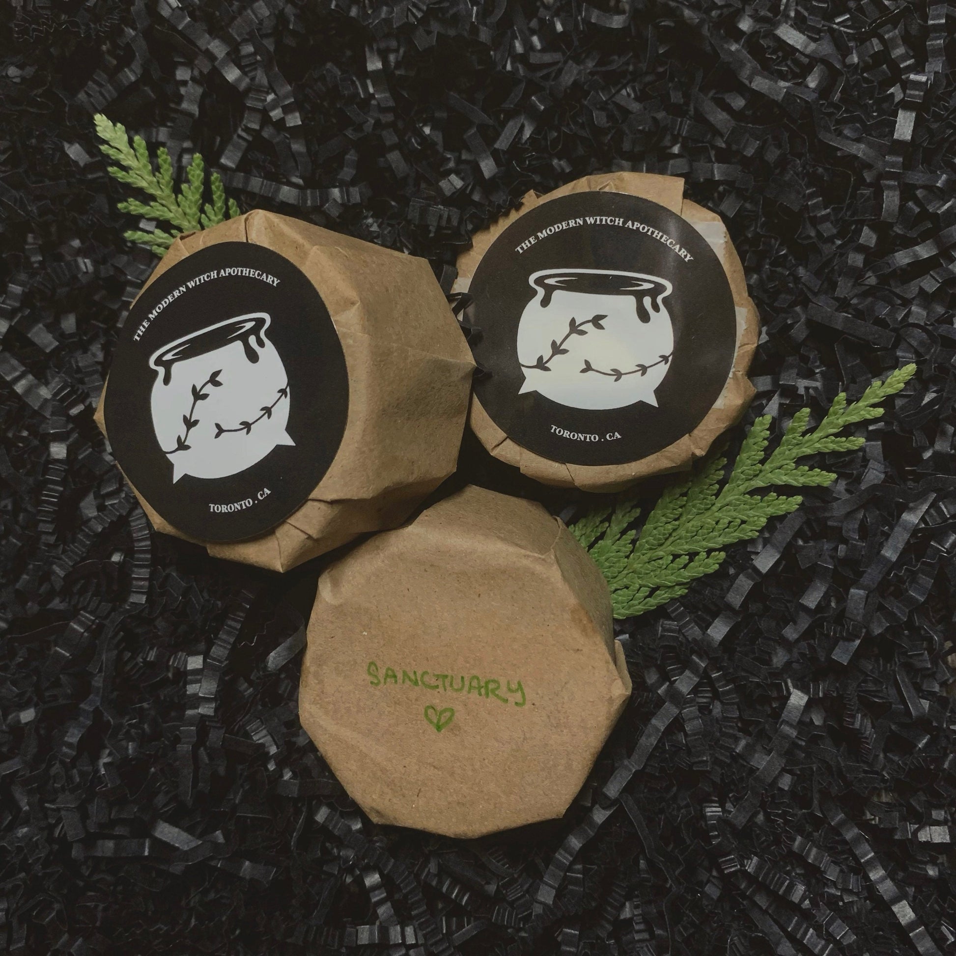 The Sanctuary Mini Spell Candle comprises a soothing blend of refreshing lime, relaxing marjoram, and grounding vetiver.ย This spell was created to fight emotional exhaustion by cleansing our aura of lingering hostile energy and reenergizing the spirit.ย